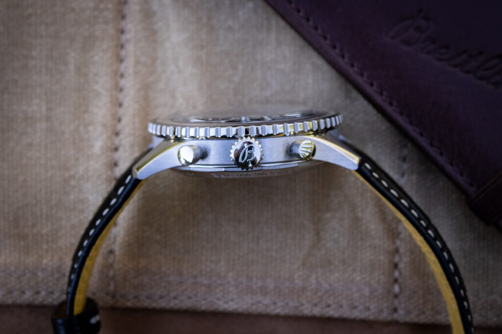 The dial printing is crisp, and the logo placement is accurate, which is often where cheaper replicas fail. The watch still has that bold wrist presence that makes the Navitimer instantly recognizable from across the room.