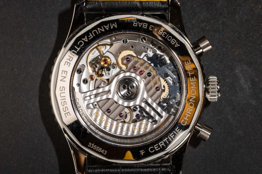 One of the biggest differences between the authentic Breitling Navitimer 1 B01 and its replica is the movement. The original uses Breitling’s in-house B01 chronograph movement, which is COSC-certified and known for its reliability. The replica, on the other hand, typically runs on a modified automatic chronograph movement sourced from third-party manufacturers.